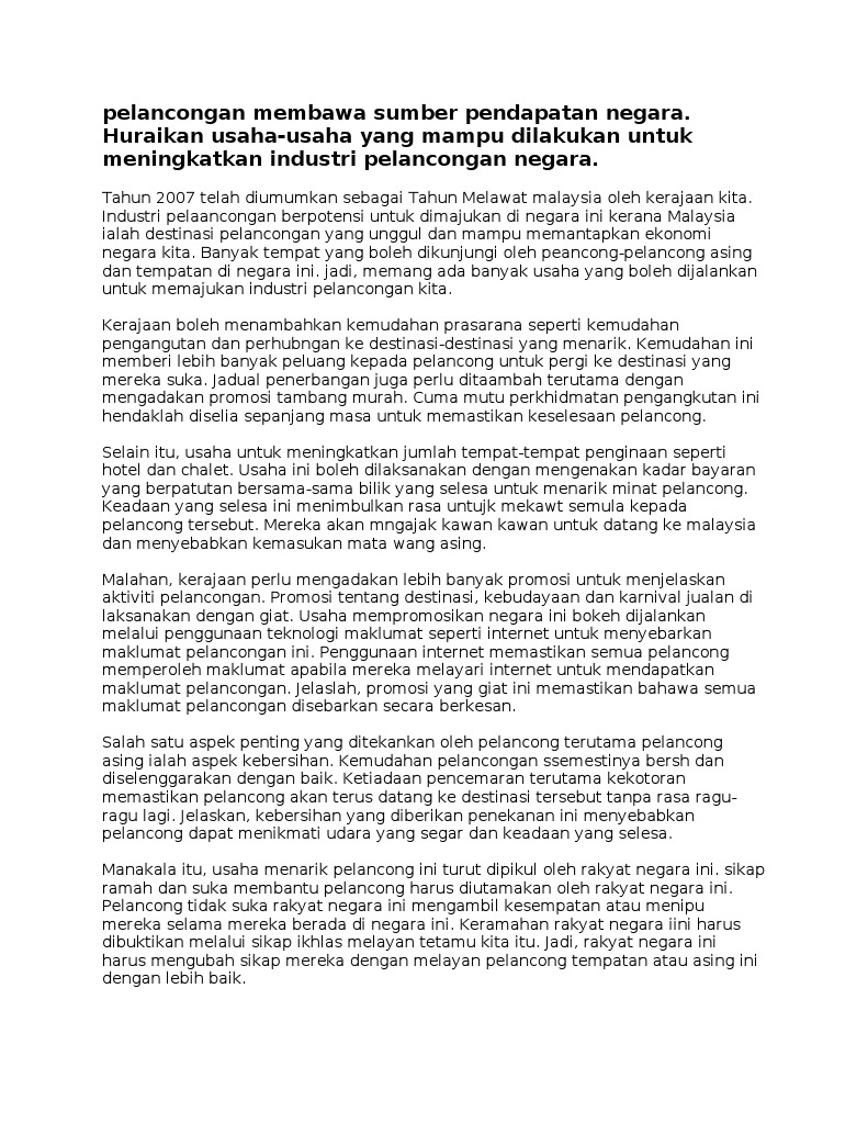 Related : Karangan Pelancongan Sebagai Sumber Pendapatan : Text of contoh persoalan karangan perlancongan..