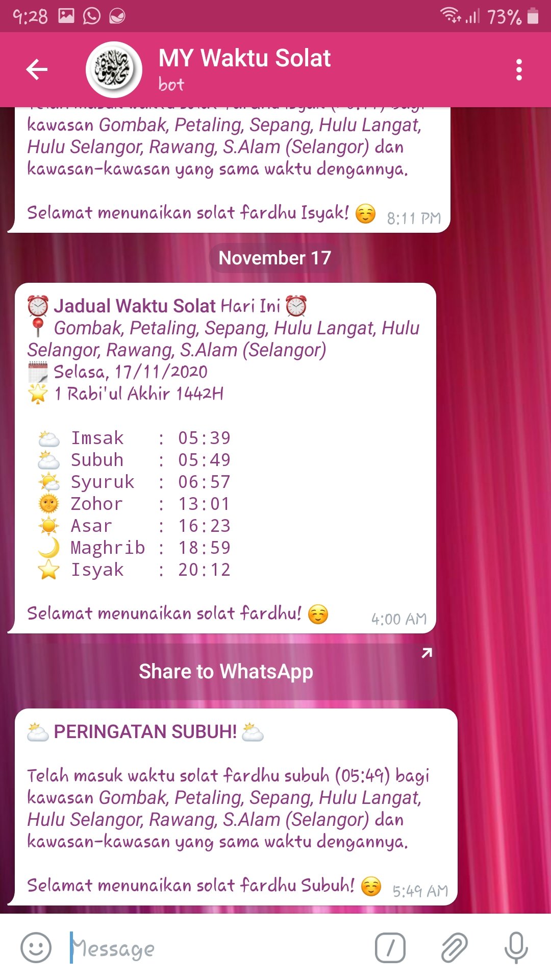 Telah masuk waktu solat fardhu isyak (20:37) bagi kawasan shah alam & yg sewaktu dengannya #waktusolat. Jadual waktu solat shah alam waktu solat adalah peruntukan tempoh atau selang masa tertentu bagi masyarakat muslim menjalani syariat solat sama ada fardhu ataupun sunat. Ahli jawatankuasa masjid bandar puncak alam fadli mohd yusuf berkata, kejadian terbabit disedari ahli kariah masjid berkenaan selepas selesai solat itu. Waktu solat shah alam, shah alam, malaysia. Shalawat dan salam kepada nabi kita sebagian kalangan berpendapat bahwa akhir shalat isya' sampai waktu shubuh.