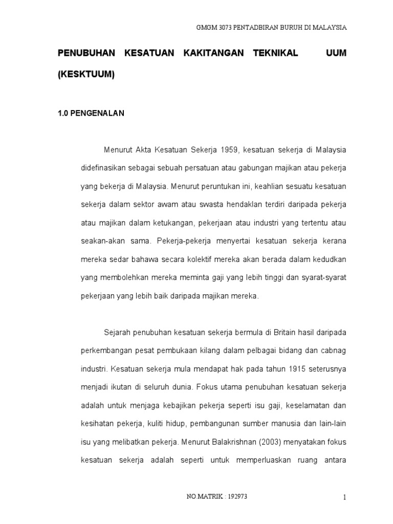 Akta imigresen 1959/63 (immigration act 1959/63). Bagaimana menubuhkan ' union' (kesatuan sekerja) ditempat kerja anda??? Akta keselamatan dan kesihatan pekerjaan 1994 (akta 514) (occupational safety and health perintah gaji minima 2012 (minimum wage order 2012). If an invitation to collective bargaining has been refused or is not accepted within 14 days or where collective bargaining has not commenced within 30. Akta perhubungan perusahaan 1967 akta kesatuan sekerja 1959.