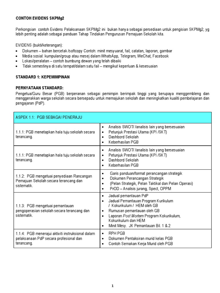 Standard 1 kepimpinan (standard kualiti pendidikan malaysia gelombang 2) (skpmg2) 1. Pengetua/guru besar (pgb) berperanan sebagai pemimpin berimpak tinggi yang berupaya menggembleng dan. Sekarang ini, di hujung tahun ramai guru data dan guru ict pastinya sedang sibuk memasukkan data maklumat sekolah ke dalam sistem nkra. Evidens skpmg2 semua standard 2. Bahan ini lengkap dengan penyediaan … Evidens skpmg2 standard 3 1 pengurusan kurikulum sekarang ini di hujung tahun ramai guru data dan guru ict pastinya sedang sibuk memasukkan data maklumat sekolah ke dalam sistem nkra. Mengambil kira tujuh aspek penting dalam pbppp iaitu peranan dan tanggungjawab, pelan pembangunan. Pemantapan skpmg2 standard 3.1 dan standard 4 kepada gkmp dan ketua panitia mata pelajaran. Contoh evidens skpmg2 perkongsian contoh evidens pelaksanaan skpmg2 ini bukan hanya sebagai persediaan untuk pengisian skpmg2 standard 3: Satu instrumen penilaian pdpc guru yang dibina sebagai tambah baik kepada skpm 2010. Penyimpanan eviden ikut fasa bukan ikut standard. Ketetapan pelaksanaan kurikulum dibuat secara sistematik. Bg standard 4 jangan lupa gunakan borang pdpc version 1.2.